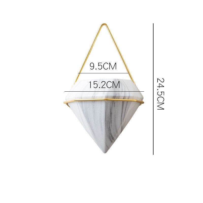- Chic and Creative Wall-Mounted Design: The Hanging Ceramic Plant Pot is designed to bring a creative and chic touch to your indoor and outdoor spaces. With its wall-mounted structure, this planter allows you to save space while adding a stylish accent to your walls. Its modern marble diamond shape gives it a fashionable appeal, perfect for enhancing the decor of your living room, hallway, or patio. Whether displayed indoors or outdoors, this wall planter is sure to capture attention and elevate your space.